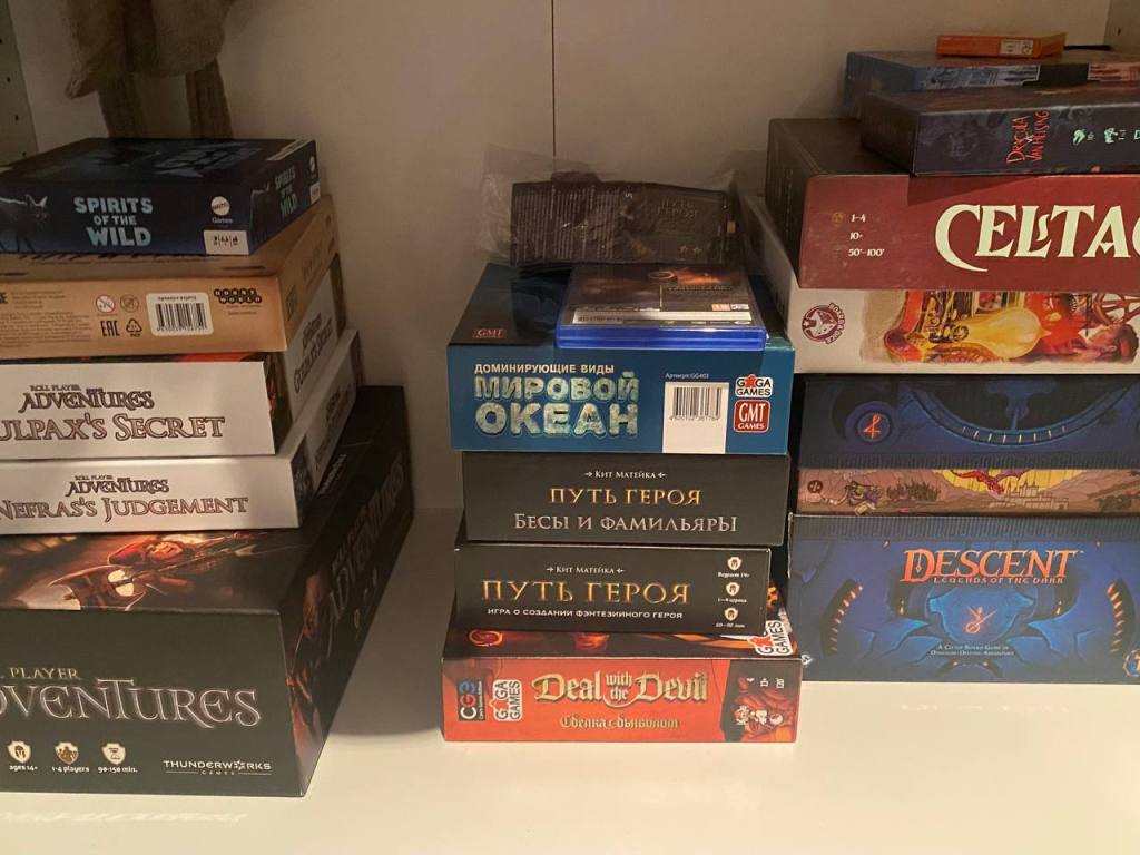 Настольных новостей особо немного. Потихонечку распродаю часть игр, которые редко играются, а то в шкаф уже не все влезает, если кому-то что-то надо — дайте знать, придумаем как передать.